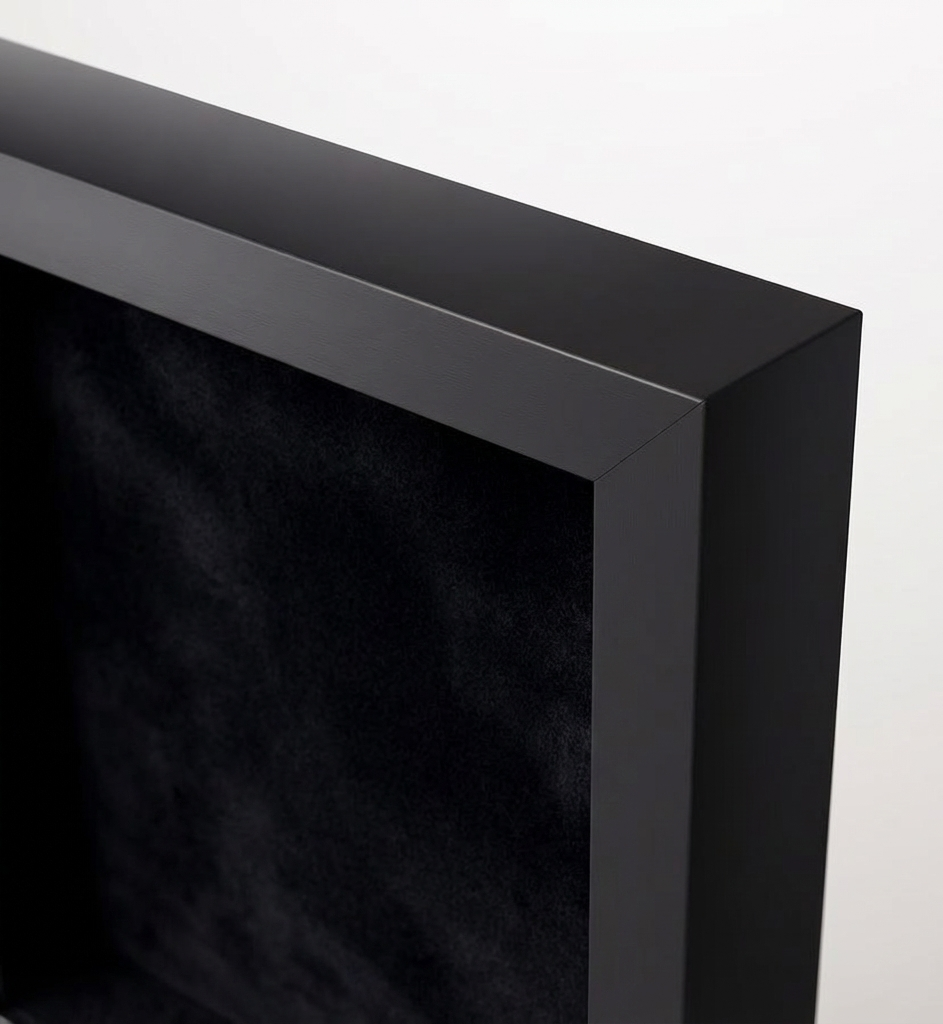 Compact framed pieces are carefully presented in a black and white box with protective cushioning, ensuring both a premium unboxing experience and secure transit.
